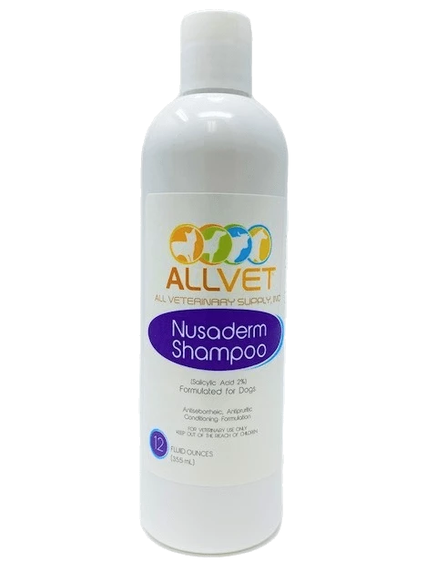 Allvet Nusaderm Shampoo is a soap free shampoo designed for use on cats and dogs. The formula is antiseborrheic, mentholated and keratoylytic with a unique combination of surfactants and coat conditioners. Can be used for the relief of irritation, itching, and skin flaking associated with seborrhea and non-specific dermatosis.