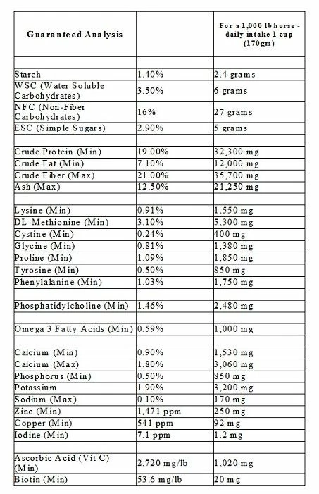 Dehydrated Alfalfa Meal, Soy Protein Concentrate, Lecithin, Yeast Culture Dehydrated, DL-Methionine, Hydrated Sodium Calcium Aluminosilicate, Ascorbic Acid, Biotin, Soybean Oil, Zinc Oxide, Basic Copper Chloride, Calcium Iodate.