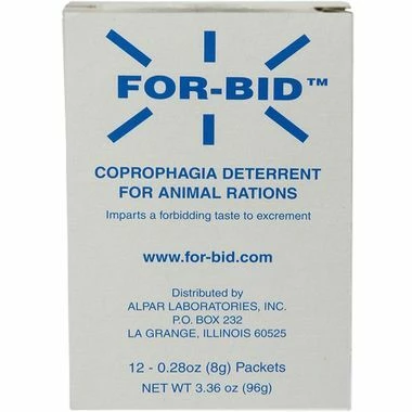 For-Bid is a Coprophagia(stool eating) deterrent for cats and dogs. Easy to use. Simply sprinkle on the pets food. It works by making your pets stool have a forbidding taste.