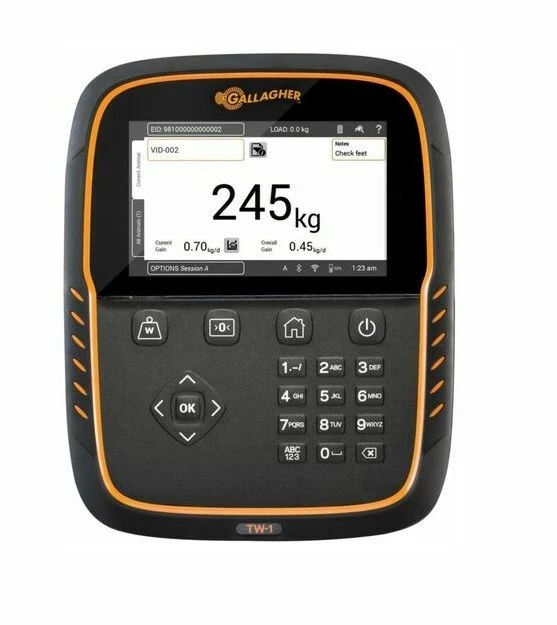 GallagherÂ’s TW-1 Scale indicator is tough, rugged and ready to work. With the innovative, scratch proof, touch screen which can easily be viewed in bright sunlight, you will be able to collect and display accurate weights very quickly.
