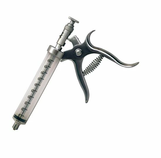 The Pro-Shot™ II 50 cc pistol-grip livestock syringe is built from high-impact aluminum making it both durable and light-weight. It has a simple dosage sleeve which can be easily adjusted from 1 to 5 cc. The syringe has a non-adjustable nylon plunger assembly and a luer lock hub. Replacement O-ring included.