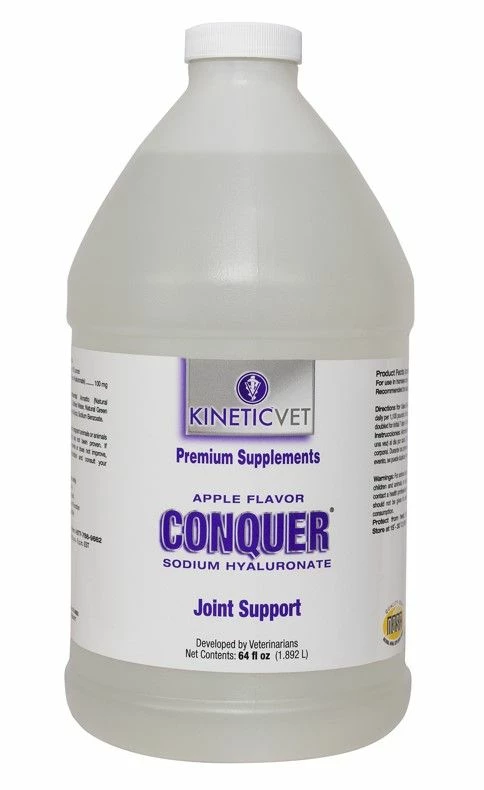 Developed specifically to help maintain the health of your animal’s joints, Conquer Liquid contains 100 mg per half ounce(15ml)of Hyaluronic Acid, which is a safe, non-toxic and naturally occurring glycosaminoglycan found in all vertebrates’ connective tissue and joint fluid.