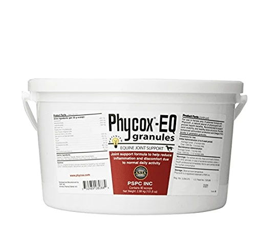 Phycox EQ Granules is a new patented joint care formula for horses containing Phycox. Phycox is a natural source of phycocyanin which has proven health benefits. It has been discovered that Phycocyanin functions as a COX-2 inhibitor that is effective in treating arthritis and other inflammatory conditions in animals.
