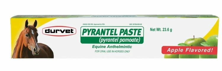 Pyrantel paste is an equine de-worming paste containing 3.60gm of pyrantel pamoate in each 23.6g syringe. It is used for the removal and control of mature infections of large strongyles (Strongylus vulgaris, S. edentatus, S. equinus); small strongyles; pinworms (Oxyuris equi);