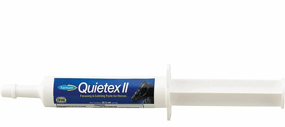 Quietex is a supplement designed to help keep performance horses calm and focused in stressful situations. Won’t cause drowsiness or affect performance. Contains a unique combination of 7 active ingredients designed to keep your horse calm and focused. Great for use in heavy training, performance activities or racing.