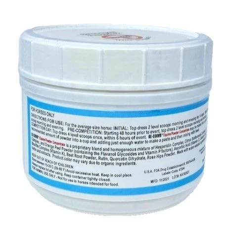 RE-COUVR Equine Powder Concentrate is a proprietary blend of all natural ingredients and herbs, fortified with Vitamin C, Vitamin K, Pure Beet Powder and Bioflavonoids.