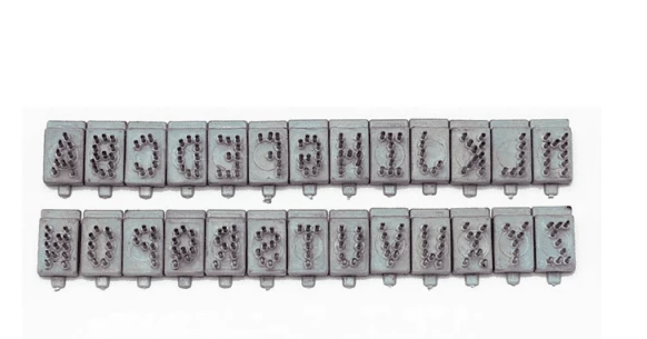 Nickel-plated steel needles set in fiberglass reinforced nylon base. Very Sharp. Designed for small animals. Fits all Stone Manufacturing Tattoo Pliers that use 5/16″ digits. includes letters A-Z.