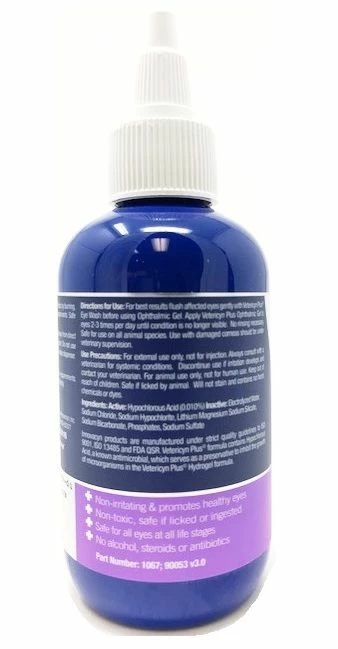 Vetericyn Antimicrobial Ophthalmic Gel helps soothe and relieve irritated eyes and provides relief from burning, stinging, itching, pollutants and other foreign materials.